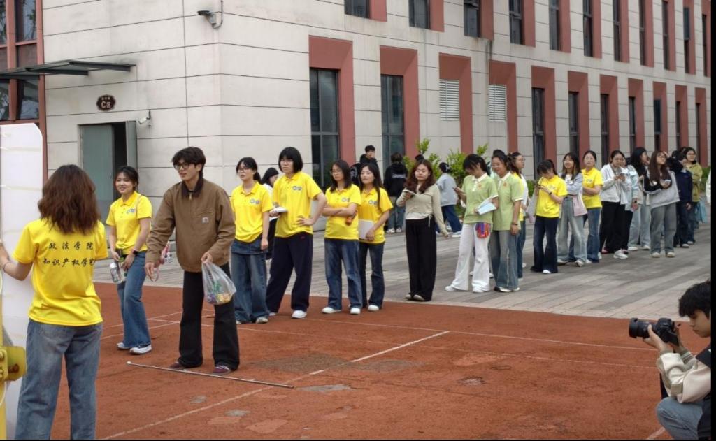 4月9日上午,沙包投掷项目率先拉开战幕。选手们屏息凝神、全力投掷。投掷声、欢呼声与呐喊声交织,尽显专注拼搏的运动姿态,现场氛围热烈十足。当日下午,迷你毛毛虫项目上演团队协作盛宴。各队选手步调一致、默契配合,口号声与助威声此起彼伏,将比赛氛围推向高潮,展现了政知学子协同奋进的青春姿态。